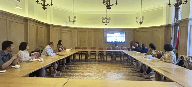 会议伊始,乔家君书记首先代表学院介绍了地理与环境学院的概况,以及近年来在国际合作与交流方面取得的显著成果与积极进展。随后,Aimee Keatch女士为来访的教师们详细介绍了贝尔法斯特女王大学的历史、规模以及国际化的办学模式,让大家对这所历史悠久且充满活力的学府有了更深入的了解。