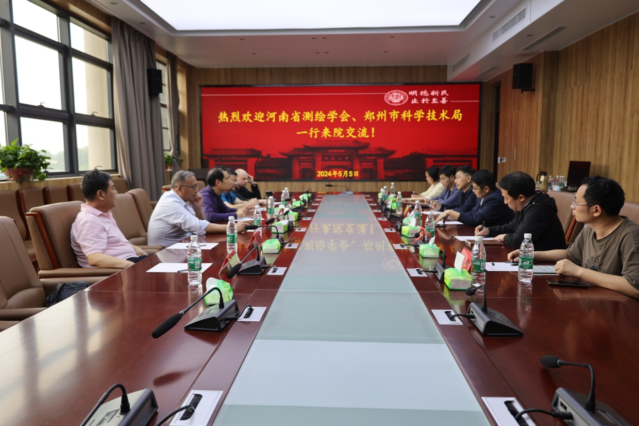 5月5日,河南省测绘学会副理事长兼秘书长周学军、郑州市科学技术局对外合作处处长胡宏涛、河南省测绘学会国际教育与合作专业委员会秘书长王深玉等一行5人来我院洽谈合作。地理与环境学院副院长丁志伟教授、黄河中下游数字地理技术教育部重点实验室副主任张喜旺教授、河南省时空大数据技术创新中心副主任王海鹰副教授、测绘工程系副主任白杨副教授及部分教师参加了此次座谈会。此次交流旨在加强国际交流与合作,推动双方在测绘科学研究领域开展深入探索与合作。