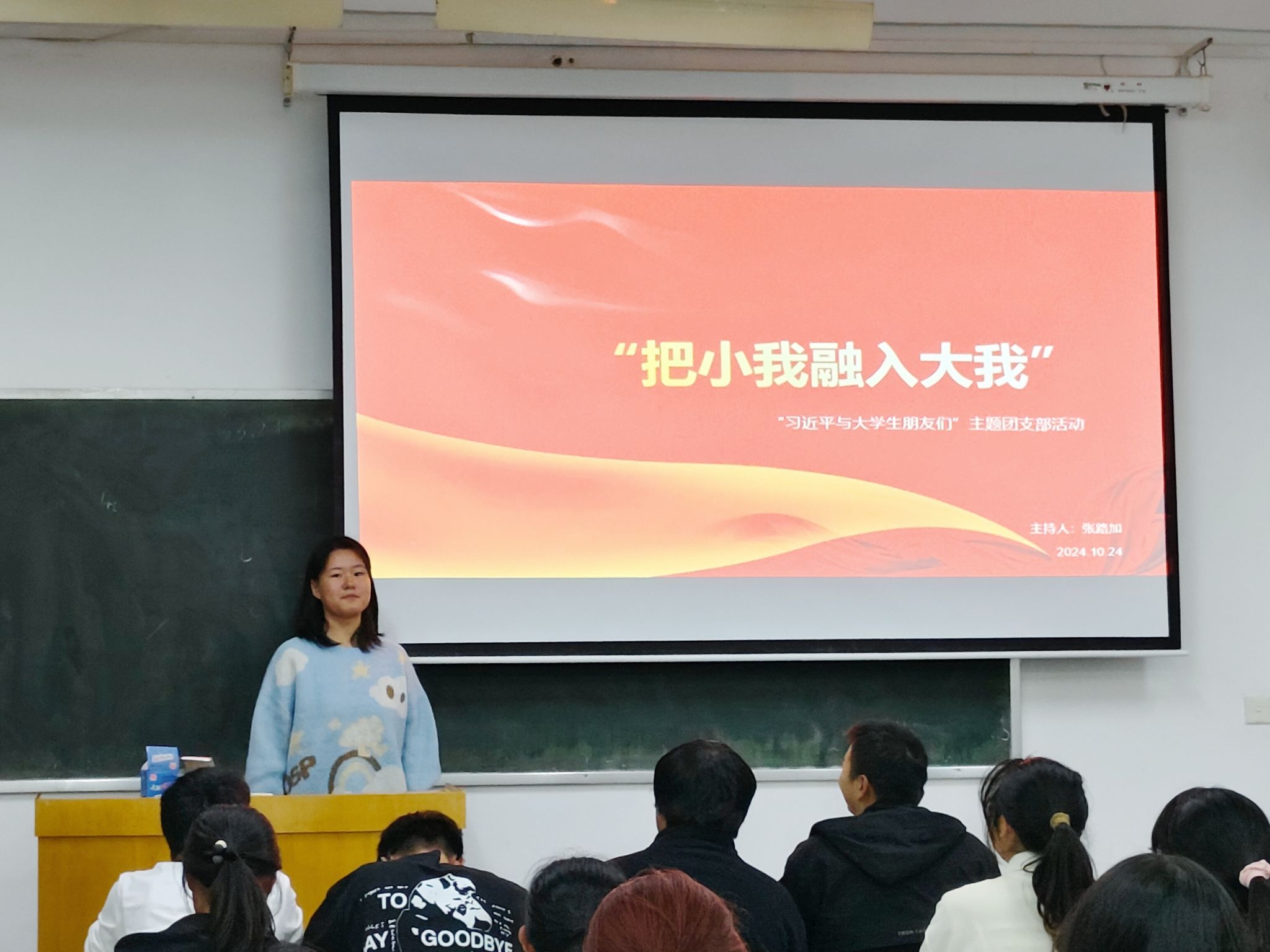 为深入贯彻习近平总书记关于青年工作的重要思想,学习习近平总书记在南开大学的讲话精神,10月24日晚,我院2024级测绘工程班团支部于金明校区综合教学楼2305教室开展以“把小我融入大我”为主题的团日活动。本次会议由团支部书记张路加主持,支部全体团员参加。