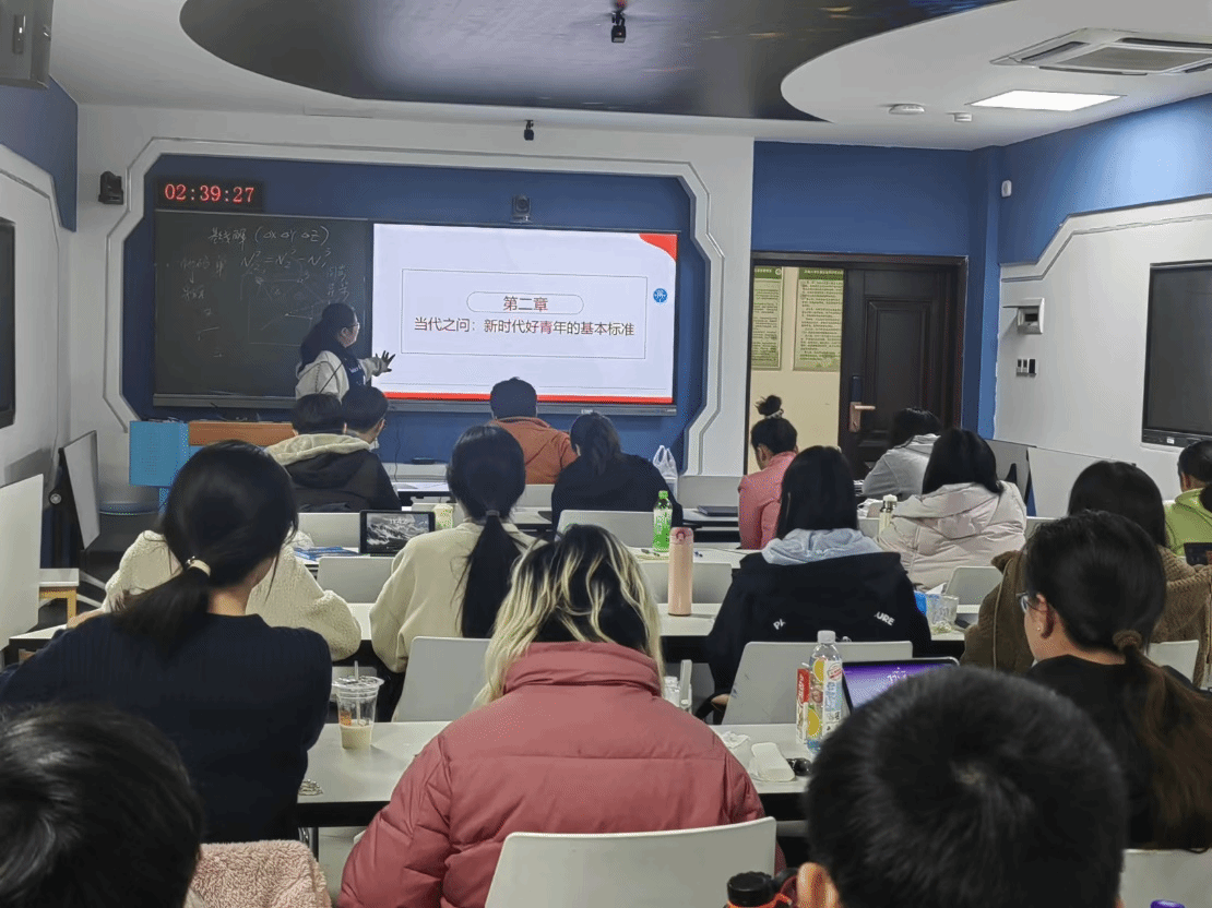 本次主题党日活动以集中学习、观看影片、交流探讨等形式进行。首先,周菁菁详细解读了《习近平与大学生朋友们》第二卷中记录的习近平总书记与大学生们交往的部分故事,包括邀请正定籍返乡大学生座谈、赴天津大学学生宿舍交流等内容,展现了习近平总书记对青年成长的深切关怀。周菁菁在会上强调了习近平总书记提出的“自强不息、厚德载物、携笔从戎、立志报国”的精神,勉励大家在学习和生活中践行习近平总书记的教导,将个人命运与国家发展紧密相连。接下来,全体团员共同观看了相关视频资料,并围绕“要将自己的命运同国家民族的命运紧紧联系在一起”的主题展开了热烈讨论。团员们踊跃发言,表达了自己在未来的学习工作中克服困难、不断进取的决心。