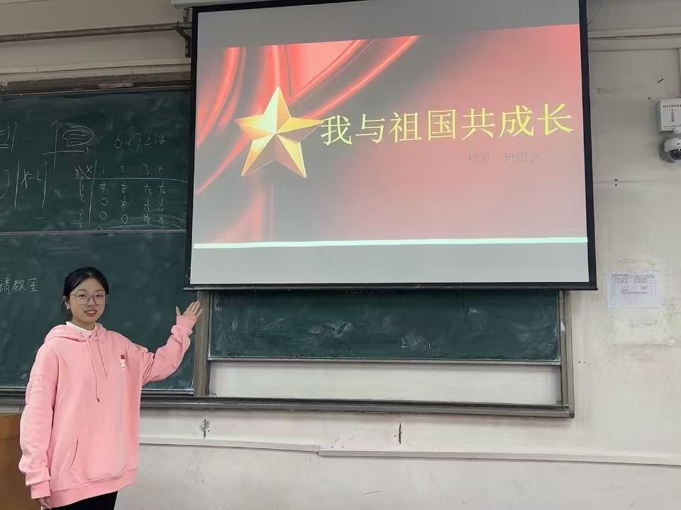 为引导广大青年深刻认识个人成长与祖国发展的紧密联系,激发他们的爱国热情和奋斗精神,培养社会责任感和使命感。10月23日,我院2024级地理科学师范一班团支部于金明校区综合教学楼4101教室开展“我与祖国共成长”主题团日活动。活动由支部书记李可欣主持,支部全体团员参加。