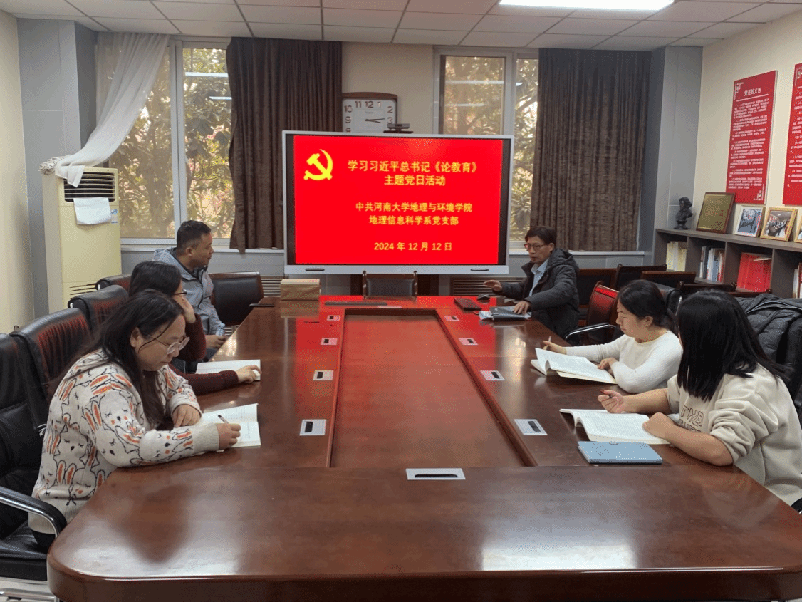 按照学院党委安排部署,12月12日下午,地理信息科学系党支部在地学楼二楼党员活动室开展学习习近平总书记《论教育》主题党日活动。会议共分三个阶段进行,并由党支部书记、环境与规划国家级实验教学示范中心副主任闫卫阳主持。