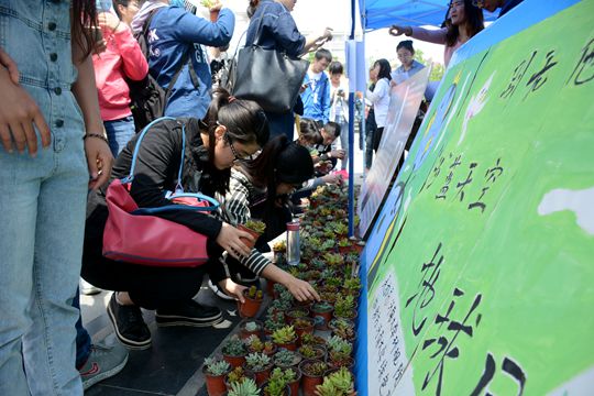 环境与规划学院学生会主席孙伟国介绍道,“现场的‘带走一片雾霾’活动就是专门为这个主题设计的。”