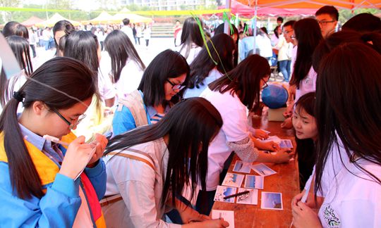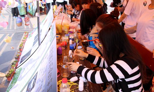 满满真诚、不走“套路”的展板吸引眼球,各路期末复习资料、废旧衣服、小药瓶、塑料瓶等也纷纷变身DIY原料,为蔚蓝天空“摇旗呐喊”。