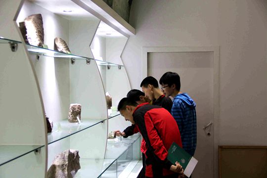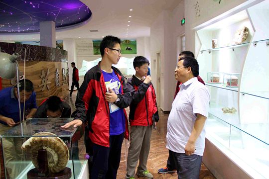 东英自然博物馆,他为大家讲解了各种标本的由来和天象图星宿的大致分布,并给大家简述了地质演变的年代变化过程。同学们仔细地观察着各式各样的标本,并提出自己的见解与疑问,与王教授进行了面对面的交流与沟通,了解了更多关于地质方面的知识。