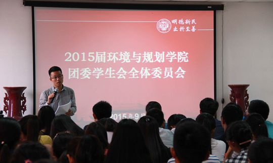 9月28日中午,环境与规划学院2015届团委学生会全体委员会在学院二楼报告厅成功举行,学生会主席团、部长层和新加入的2015级学生会委员参加了此次会议。会议由学术部部长陈嘉倩主持。