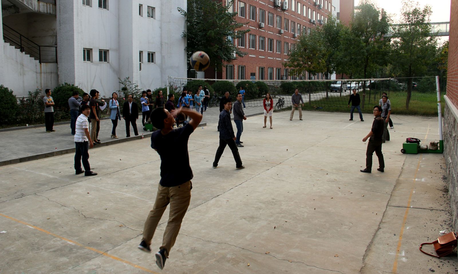10月9日下午,环境与规划学院教师排球预选赛在学院北侧排球场火热进行。学院领导班子到现场与教职工一起欢乐竞技。