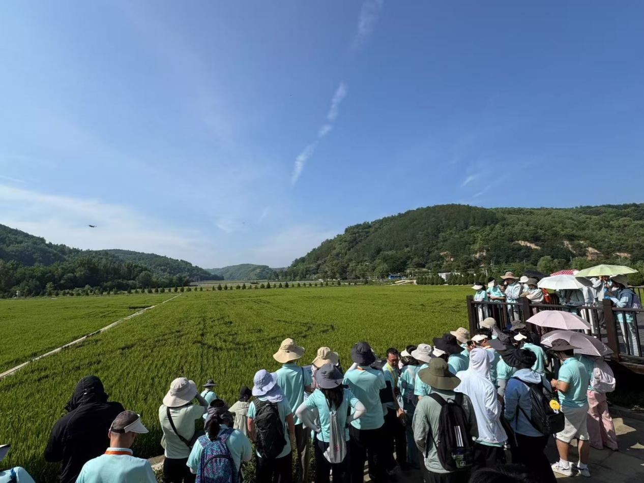 南泥湾沃土寻根,感悟“自力更生”的地理基因。昔日“陕北好江南”的田野,成为河大地理学子实践的首站。参观南泥湾大生产纪念馆,队员们厘清了大生产运动的历史背景、实践过程及其对党和国家发展的深远影响;驻足南泥湾稻田,连片的田垄与现代农业设施相结合,既展现了“自力更生、丰衣足食”的大生产运动传统,也为地理学视角下的农业生产与生态保护协同发展提供了鲜活案例。在杨家岭革命旧址,沿着黄土沟壑,同学们参观了毛泽东故居、周恩来故居、中共中央旧址、七大会议旧址等历史遗存,聆听七大故事。在实物史料与现场讲解的交织中,革命先辈在艰苦自然条件下运筹帷幄、开创新局的坚韧精神跃然眼前。驻足延安新城观景台,俯视现代化的延安新城,赞叹先辈们自力更生、艰苦奋斗的精神在现代发展中的赓续与践行,体会到了革命老区在新时代城乡规划与可持续发展中坚持老一辈革命精神,并与时俱进的探索精神。