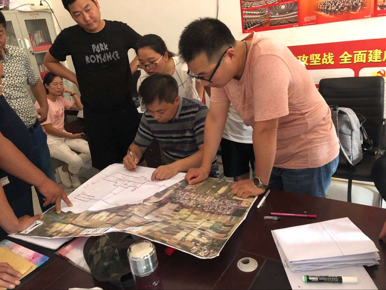 与此同时,长垣县村级规划项目的内业处理有条不紊地进行。村庄整治规划和建设规划两个小组集中精力、统一协作,运用Photoshop、ArcGIS、AutoCAD等软件对数据进行分析处理,在不断修改中生成并完善村庄规划方案。同学们在内外业调研工作中的表现和付出得到了任务项目负责人王喜的认可。