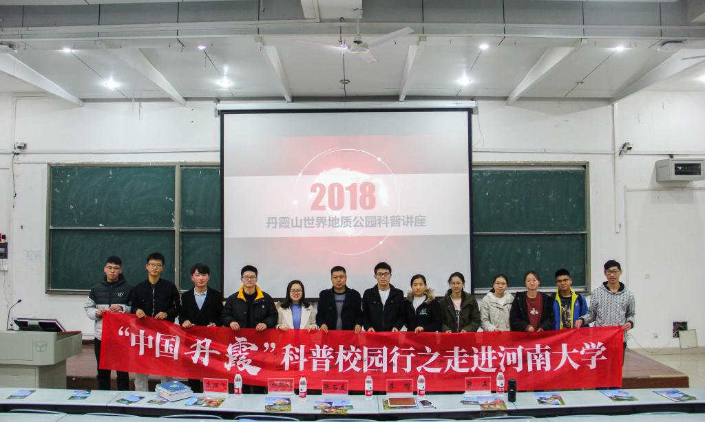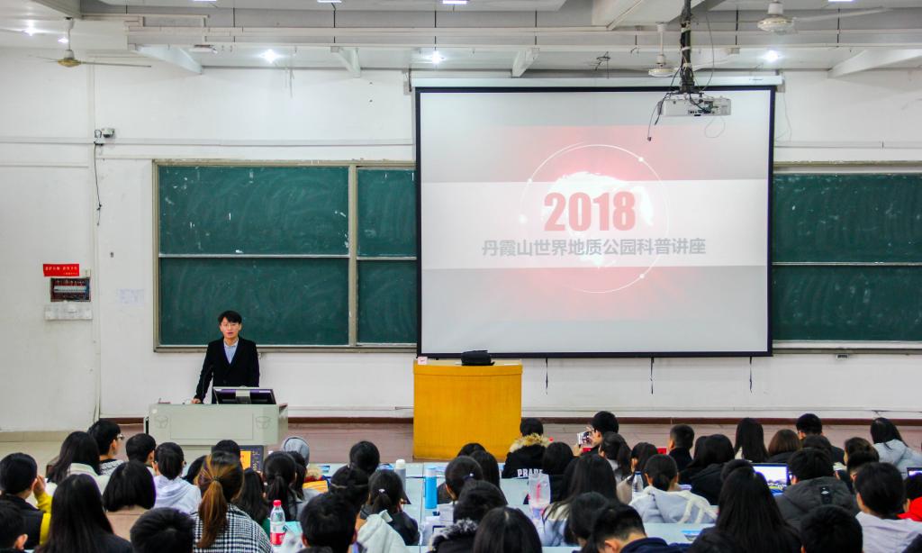 讲座开始前,脚爬客(武汉)信息技术有限公司向我院团委学生会捐赠《奇美天成丹霞山》和《地学真好玩》等共计八本科普图书。随后,2018年丹霞山世界地质公园科普志愿者陈金龙给参加本次讲座的同学们分享了他和丹霞山的故事,进行了有关“丹霞地貌”地学知识的科学普及。同时,在讲座过程中,他提出并倡议大家:“作为新时代的年轻人,特别是地理人,我们应当具有更强的环境与生态意识,并主动承担起更多的社会职责,多走出去,参与到实践当中,做到读万卷书,也要行万里路。”伴着阵阵掌声,本次讲座最终圆满落幕。
