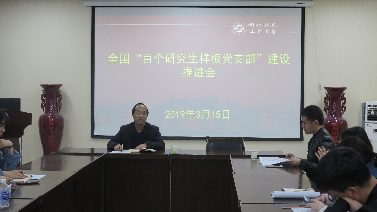 环境与规划学院研究生四个党支部在学院二楼报告厅举行全国“百个研究生样板党支部”建设推进会,参加会议的有学院党委副书记徐小军、博士研究生党支部书记陈太政,研究生各党支部委员、党员及入党积极分子。会议围绕两项议题进行:研究生样板党支部建设和阶段成果凝炼。本次会议由学院团委副书记、研究生第一党支部书记魏建飞主持。