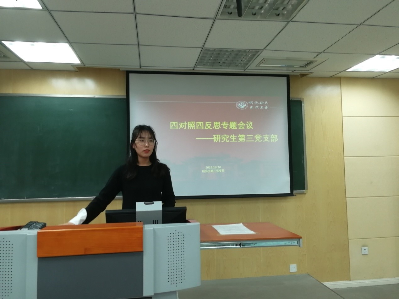 按照学校“不忘初心、牢记使命”主题教育活动计划,在学院党委安排下,10月30日下午14:30,环境与规划学院研究生第三党支部在学院502教室开展“四对照,四反思”专题会议。会议由研究生第三党支部书记吕航主持。