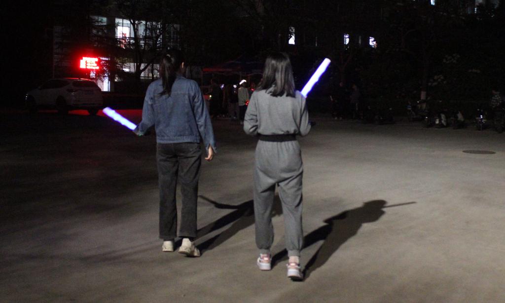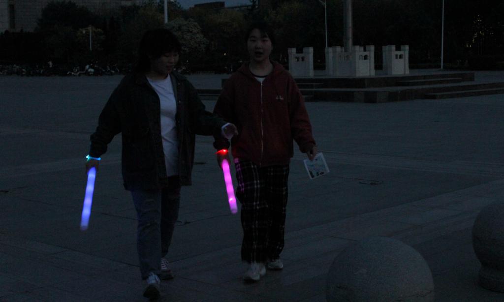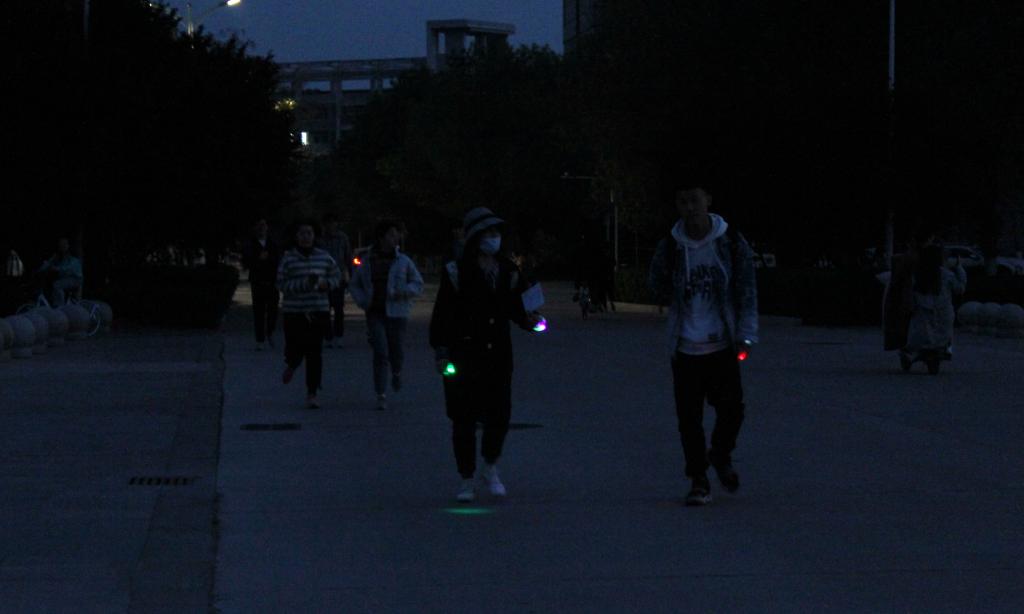 公益林贡献自己的绵薄之力。夜幕降临,“荧光夜跑”正式拉开序幕。约200名报名的师生随机或自行两两组队,在环境与规划学院门口起始点集合,领取并佩戴荧光棒、荧光手环或荧光戒指,然后绕中州路环线进行慢跑。奔跑着的五彩荧光队伍将校园装点成一个荧光闪耀的欢乐海洋,吸引了许多人的目光。