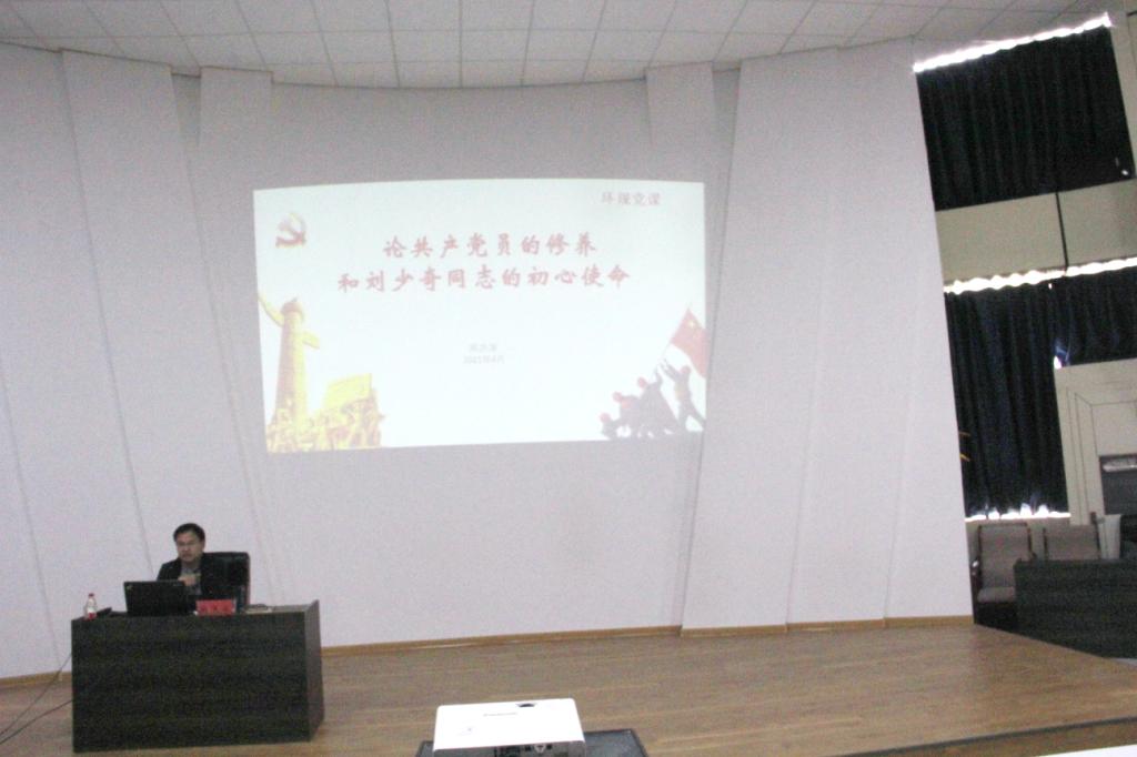 随后,郑洪涛以“论共产党人的修养和刘少奇同志的初心使命”为题,从 “刘少奇同志光荣伟大的一生”“刘少奇同志是中国共产党人和中国人民学习的榜样”“《论共产党员的修养》”“《论共产党员的修养》的时代价值”四个方面进行讲解授课。郑洪涛高度赞扬了刘少奇同志为党的发展事业奋斗一生的伟大事迹以及刘少奇同志一心向党、对党忠诚的崇高精神品质。他还提到:“即使是在文化大革命期间刘少奇同志受到诸多不公的遭遇也依然没有忘记成为共产党人的初心和使命,他始终相信好的历史是人民书写的,人民书写的历史是公正的。”