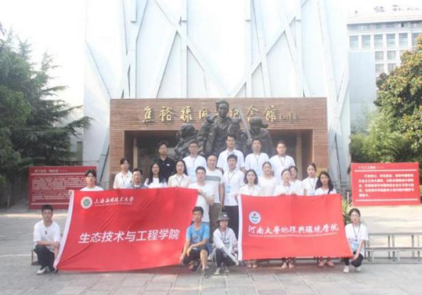 地理与环境学院暑期“三下乡”校级重点社会实践调研团由临时党支部书记郑开元带队,赴兰考县焦裕禄爱国主义教育基地参观学习,途中巧遇上海应用技术大学生态技术与工程学院调研团队。为热烈庆祝中国共产党成立100周年,深入开展党史学习教育,重温党的光辉历史,不断激发全体党员学党史践使命的热情,两所高校团队临时决定开展“铭记红色历史,践行初心使命”校际特色主题党日活动。