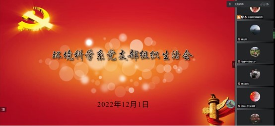 2022年12月01日14:30-17:30地理与环境学院环境科学系党支部支委会组织本支部党员召开以“深入学习习近平总书记视察安阳重要讲话精神,大力弘扬红旗渠精神”为主题的专题组织生活会,考虑到当前的疫情形势,集中学习通过线上(腾讯会议)进行。组织生活会由支部书记李旭辉同志主持。徐小军副书记受邀以普通党员的身份参与本次组织生活会。支部党员通过观看视频(央视《国家记忆》|《根脉》之《红旗渠精神》(上)(下))和自由讨论的形式深入学习领会红旗渠精神。