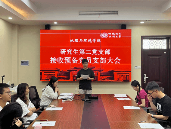 随后,研究生第二党支部召开接收预备党员支部大会。由陆蓉同志向全体党员及发展对象介绍了本次会议的基本流程,宣布本支部有表决权的正式党员共29人,应到会29人,实到会24人,有表决权的正式党员到会人数超过应到会有表决权人数的半数,会议生效。