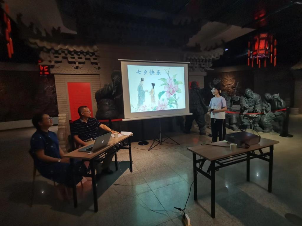 寻根渭水小分队分别参观了“西府人生”和“宝鸡风尚”两大主题展厅,其中的社火脸谱和木版年画等非物质文化遗产色彩鲜明,手艺精美,反映了宝鸡民俗的民间艺术水平高超。紧接着,团队成员化身志愿者,为大家普及相关的专业知识,讲解有关七夕节的民俗文化,提到了保护民俗文化的重要性和必要性。此外,在与中国民俗学会理事,宝鸡文理学院副教授王渭清的交流中,团队成员真切地感受到王老师对宝鸡文化了解之深,以及老师的见多识广,老师还对队员们学习人文地理提出一些建议,大家受益匪浅。在参观即将结束时,团队成员采访了几名参观者,了解了他们眼中的民俗文化。