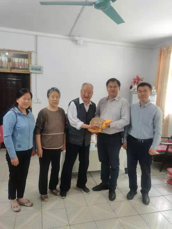 5月11日上午,学院党委书记郑洪涛、副书记徐小军和党办主任王艾萍一行三人专程到已80岁高龄的63级校友方毓昌先生家中接受龟化石和矿石标本捐赠。