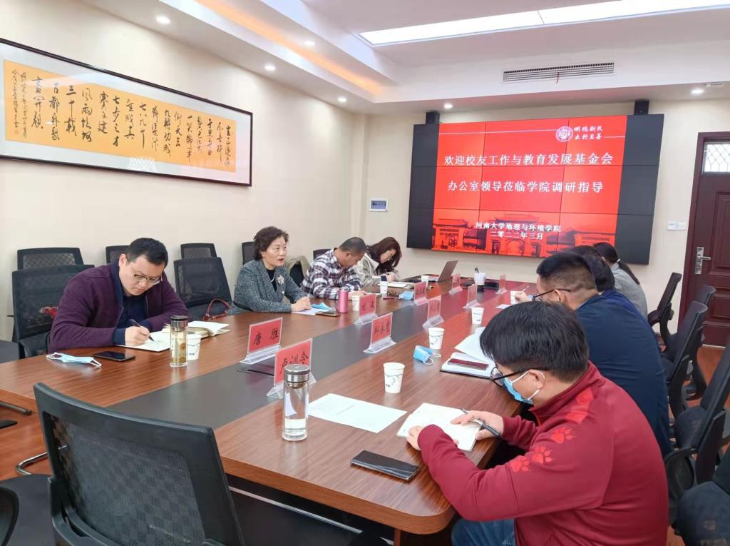 3月16日上午,校友工作与教育发展基金会办公室主任刘波、副主任魏春吉、唐胜一行到地理与环境学院调研指导校友与基金会工作,学院执行院长、党委副书记乔家君,党委副书记徐小军,副院长邱永宽及相关工作人员参加。