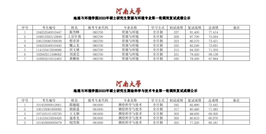 香蕉视频 地理与环境学院2023年硕士研究生第一轮调剂复试成绩公示
