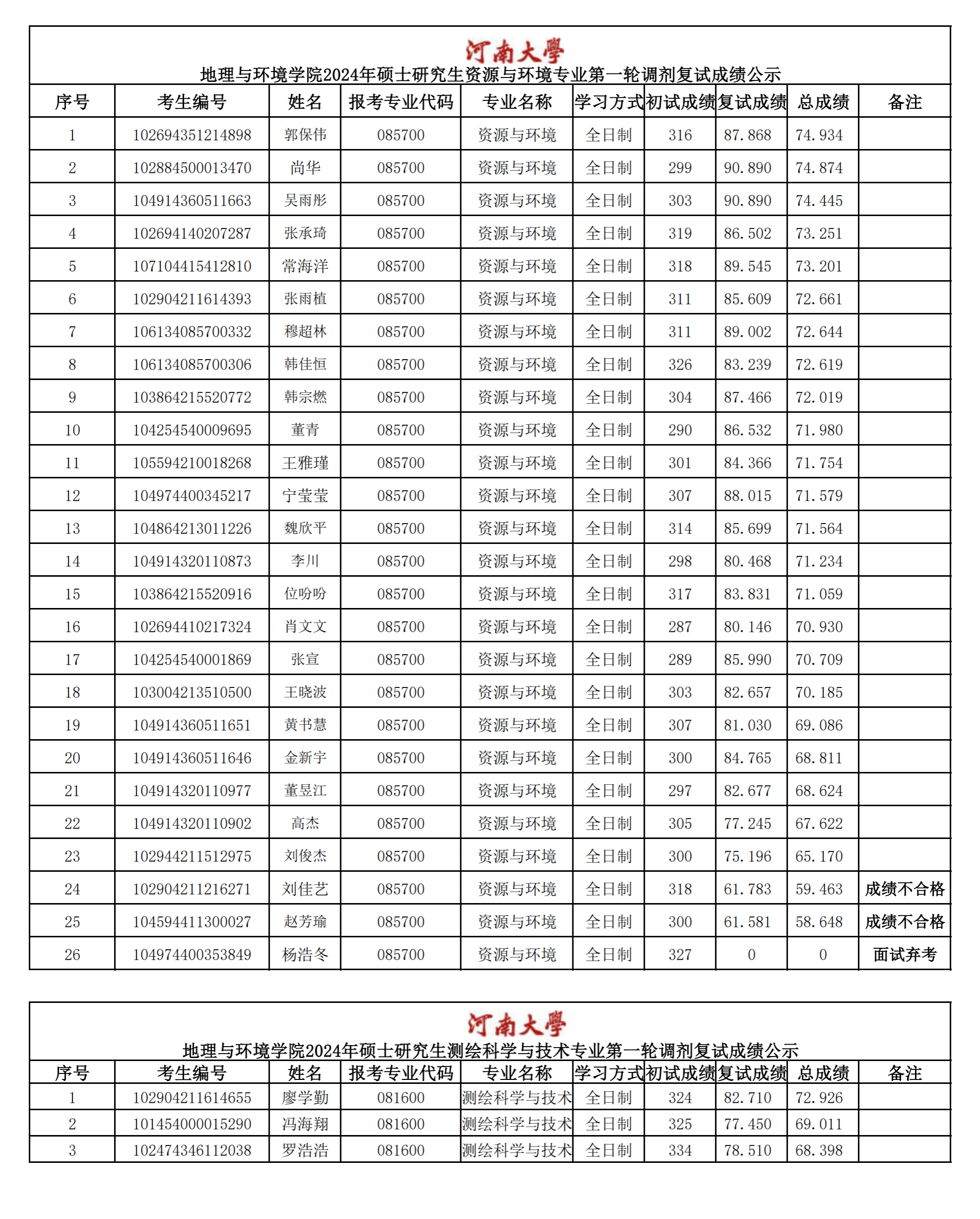 香蕉视频 地理与环境学院2024年硕士研究生第一轮调剂复试成绩公示