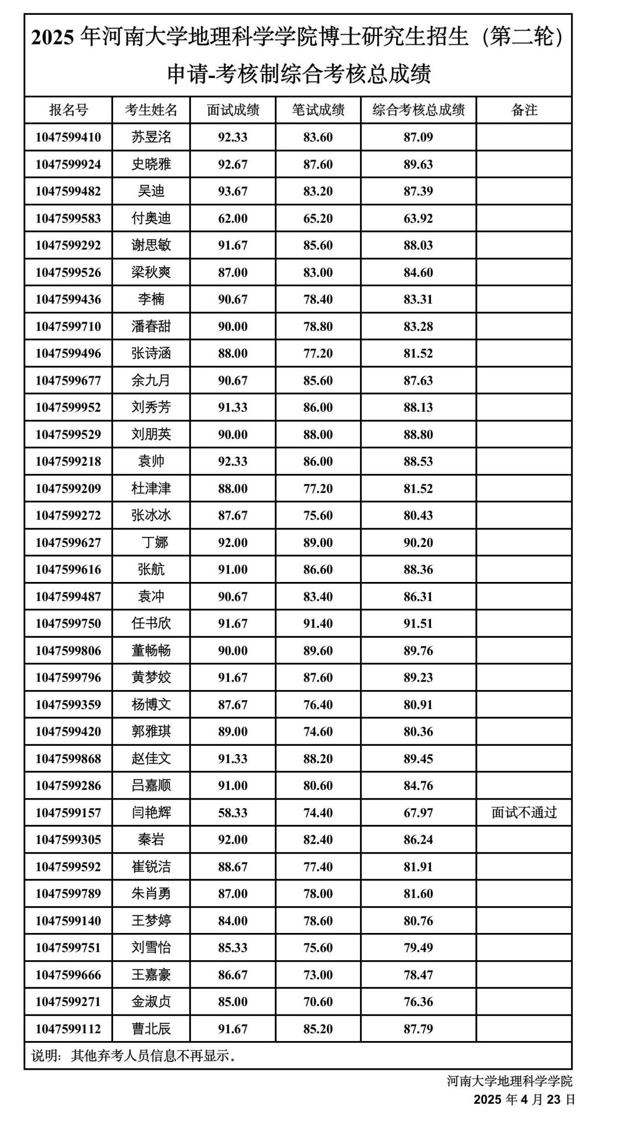​2025年香蕉视频 -博士研究生招生考试申请考核制(第二轮)综合考核总成绩