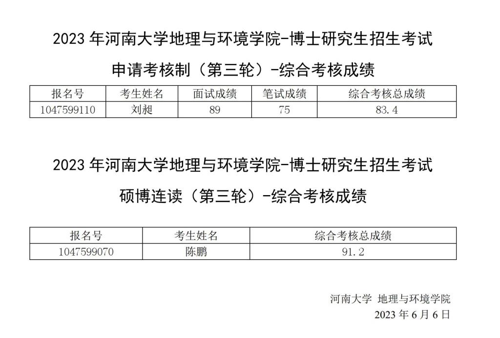 2023年地理与环境学院博士研究生招生综合考核成绩-第三轮